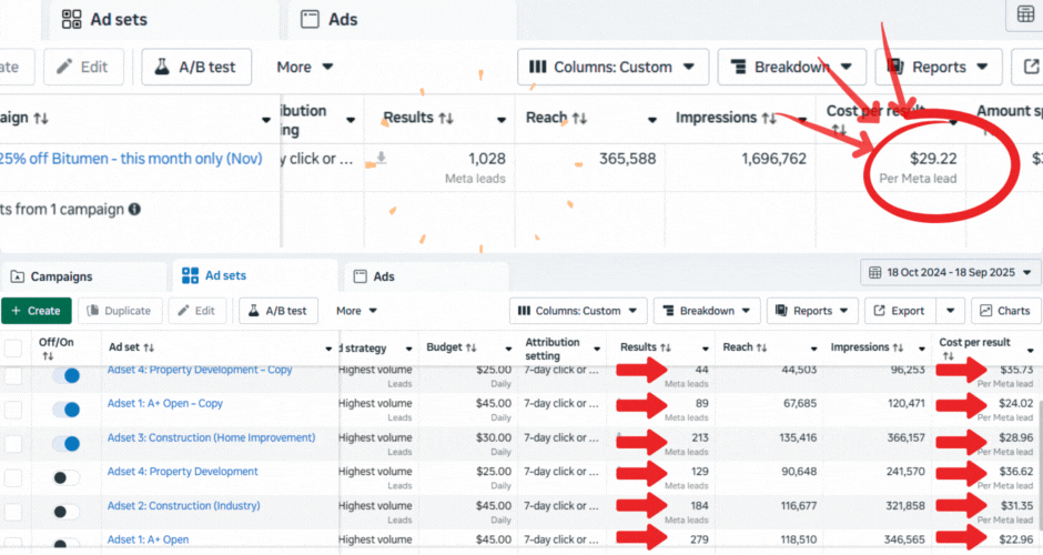 We got them an eye watering 1028 Leads @ $29.22 Per lead